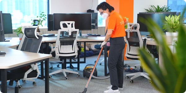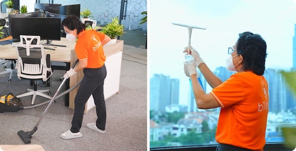 bTaskee cung cấp dịch vụ dọn dẹp văn phòng chuyên sâu, bao gồm vệ sinh toàn diện các khu vực như bàn làm việc, hành lang, pantry và nhà vệ sinh… Khách hàng còn được tùy chọn thêm các gói dịch vụ mở rộng Lau kính và Hút bụi thảm với đầy đủ dụng cụ và quy trình chuyên biệt.